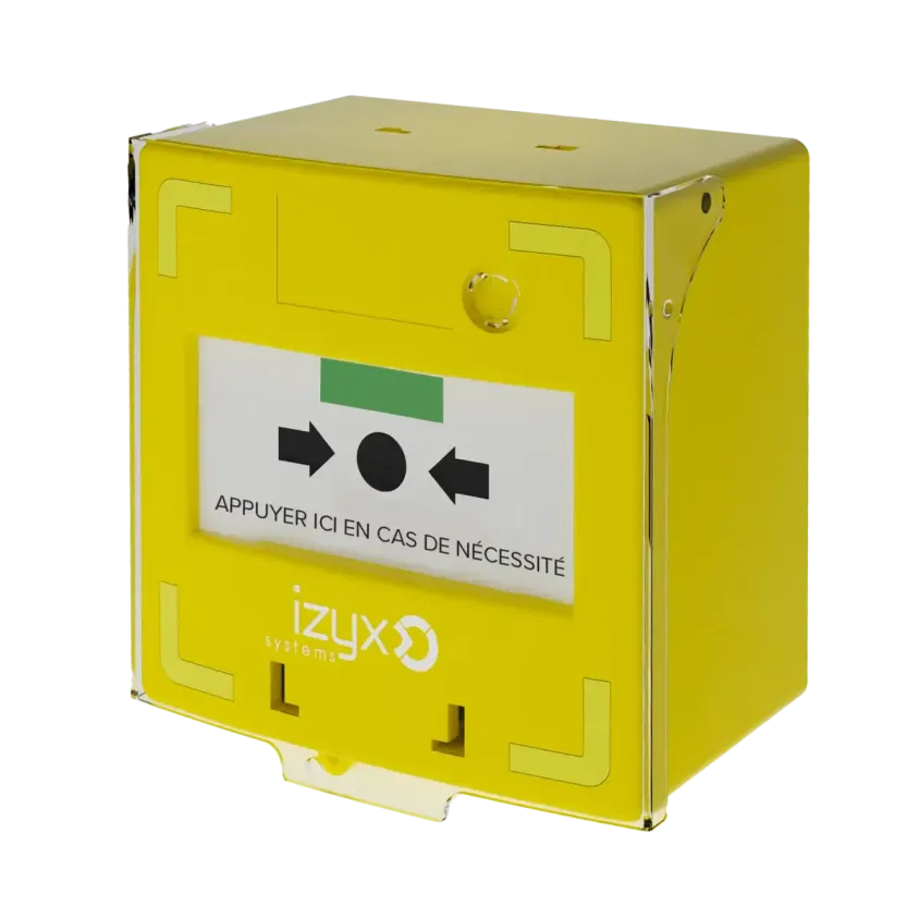 Déclencheur manuel jaune RCP, 1 contact, réarmement en façade, livré avec un capot, un scellé et deux clés