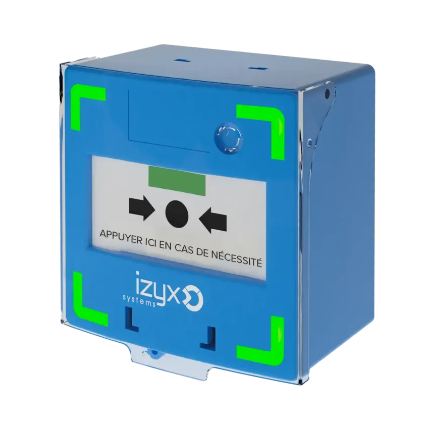Déclencheur manuel bleu RCP, 3 contacts, signal lumineux rouge ou vert suivant état, alarme sonore, 12/24/48V DC, réarmement en façade, possibilité de piloter le buzzer par une commande externe, livré avec 1 capot, 2 clés, 1 scellé